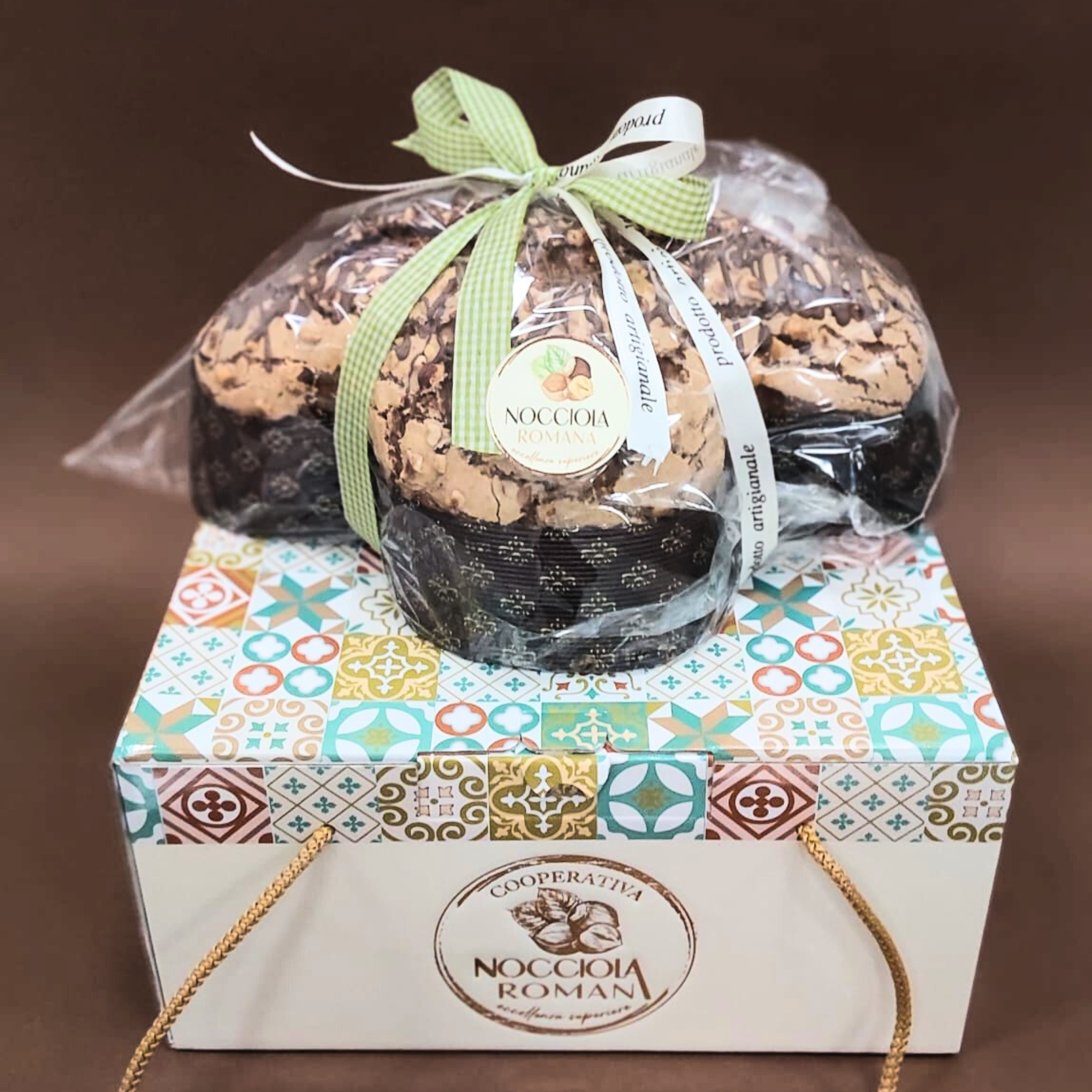 - farina di FRUMENTO, cioccolato al latte (zucchero, burro di cacao; pasta di cacao; LATTE intero in polvere; siero di LATTE in polvere, emulsionante: lecitina di SOIA), BURRO senza lattosio, pasta di NOCCIOLE 6,3%, acqua, tuorlo d’UOVO, zucchero, zucchero invertito, Lievito madre vivo (FRUMENTO), PANNA senza lattosio, granella di NOCCIOLE 0,8%, sale.